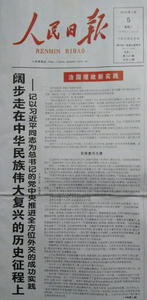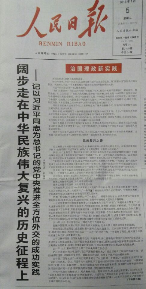 《 人民日报 》(2016年01月05日 01版 记者 杜尚泽)